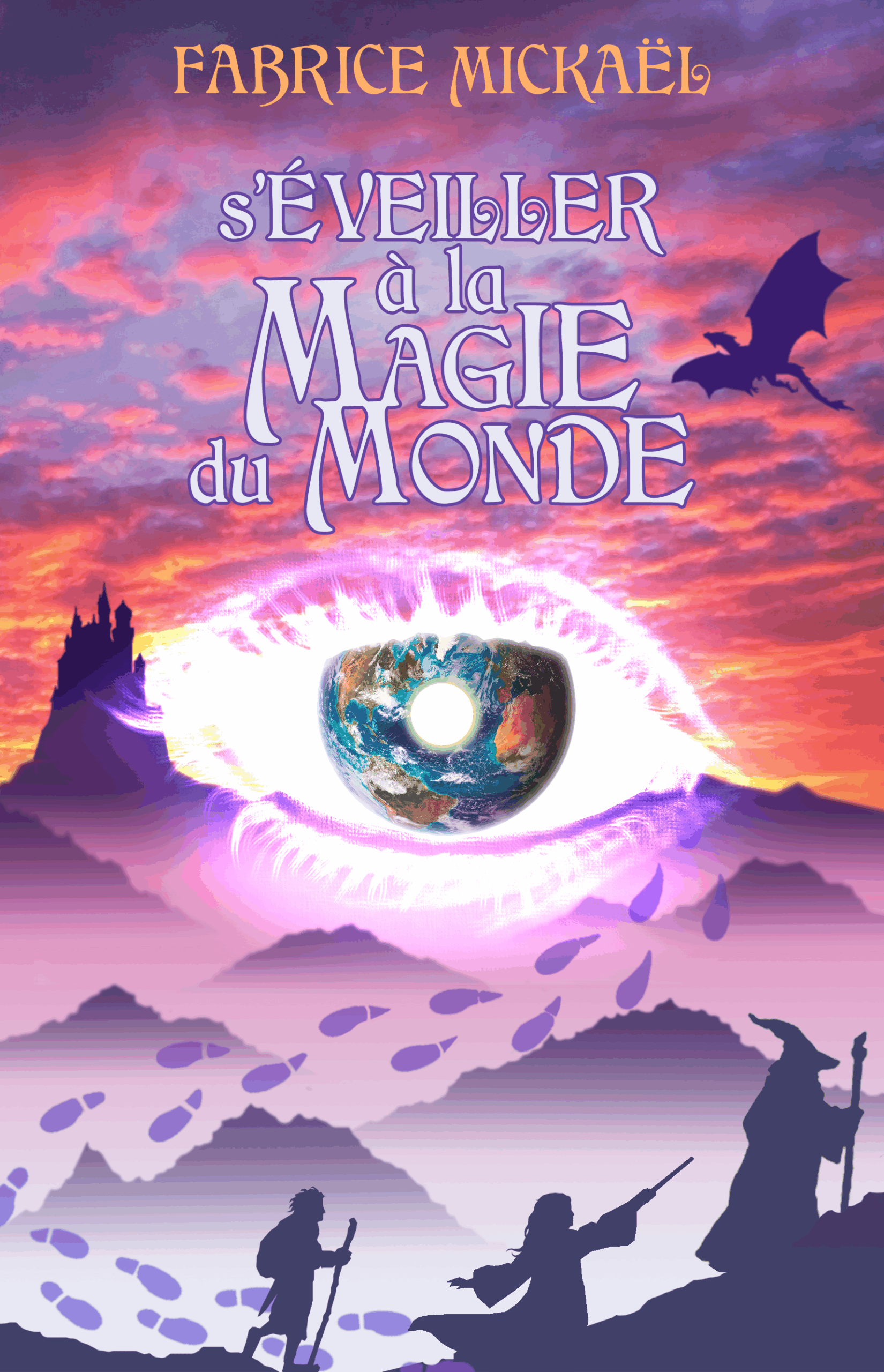 L’œil-Terre au centre de la composition est un marqueur de temps, de spiritualité et d’incarnation : il est tout à la foi(s) activation de sa magie, soleil levant, soleil couchant, aube et crépuscule, début et fin. Et transporte l’idée du cheminement spirituel sur Terre fait d’une succession de pas et de larmes, d’épreuves et d’obstacles à franchir pour avancer dans sa vie de l’enfance, à l’adolescence, puis à l’âge adulte, de l’apprenti au sage, voie d’apprentissage qui élève l’élève au rang de maître, permet l’ascension et l’envol dans un cercle vertueux qui monte jusqu’aux cieux, ici représentés par le dragon et le château école de magie.